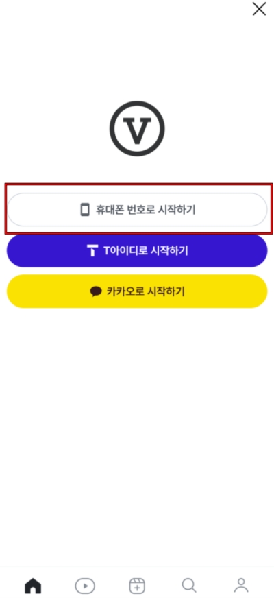 새로운 서비스를 시작하는 건 언제나 조금 설레는 일이죠. V 컬러링 앱을 처음 실행하면 몇 가지 방법으로 시작할 수 있는데, 저는 그중에서 가장 간단해 보이는 '휴대폰 번호로 시작하기'를 선택했어요. 복잡한 아이디나 비밀번호 없이 내 번호만으로 간편하게 가입할 수 있어서 좋더라고요.
