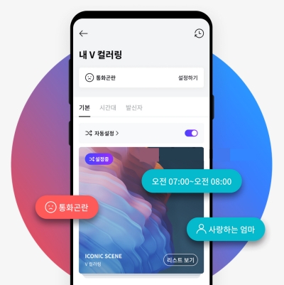 영상을 설정하고 나면 이제 내 마음대로 꾸밀 차례예요. '내 V 컬러링' 메뉴에 들어가면 특정 시간대에만 다른 영상을 보여주도록 설정하거나, '사랑하는 엄마'처럼 특정 연락처에만 특별한 영상을 지정해 둘 수도 있더라고요. '통화곤란' 상태를 설정해두는 세심한 기능도 있었어요.