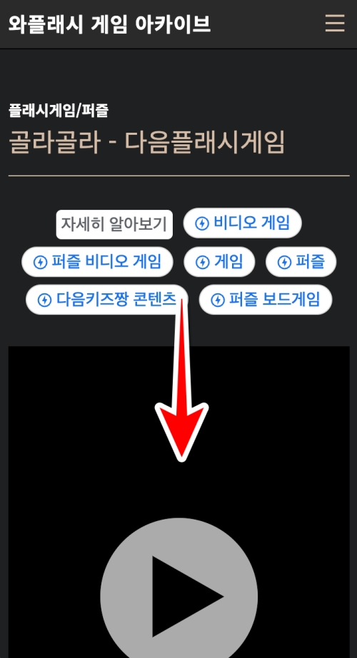 사이트에 들어가면 바로 게임이 보이지 않고 글자들이 먼저 나와서 당황할 수 있어요. 하지만 걱정 마세요. 화면을 조금만 아래로 내려보면 게임을 실행할 수 있는 검은색 화면이 나타날 거예요. 스마트폰으로 할 때는 이 게임 화면을 손가락으로 잘 움직여서 화면 정중앙에 오도록 맞춰주는 게 좋아요.
