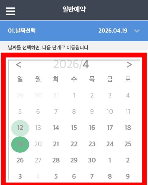 이제 본격적인 광릉수목원 예약하기를 진행해볼게요. 가장 먼저 방문할 날짜를 선택하는 달력이 보여요. 예약 가능한 날짜들이 활성화되어 있으니, 원하는 날짜를 골라주세요. 저는 예시로 4월 19일을 선택해 볼게요. 주말이나 공휴일은 예약이 빨리 마감될 수 있으니 미리 서두르는 게 좋겠죠.