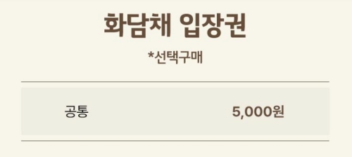 화담숲 내에 있는 특별 전시관인 '화담채'에 방문하고 싶다면 별도의 입장권이 필요해요. 이것은 선택 구매 항목으로, 나이나 신분에 상관없이 모두 동일한 요금을 내고 이용할 수 있으니 참고해서 예매 계획에 추가하시면 됩니다.