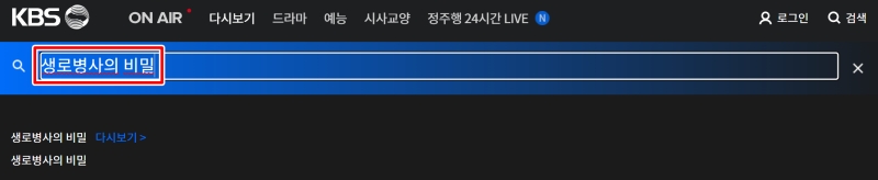 검색 아이콘을 선택하면 화면 상단에 검색창이 길게 나타납니다. 여기에 우리가 찾으려는 프로그램 이름인 '생로병사의 비밀'을 정확하게 입력해 주세요. 보통 몇 글자만 입력해도 아래에 관련 검색어가 나타나서 더 쉽게 찾을 수 있어요.