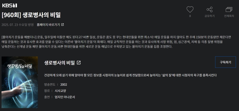 생로병사의 비밀 다시보기 재방송 (kbs)