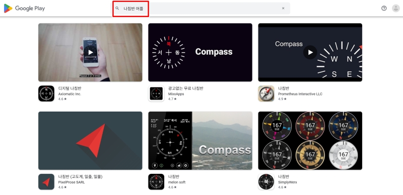 7. 만약 사용해본 프로그램이 마음에 들지 않더라도 걱정할 필요 없어요. 앱 장터에서 '나침반 어플'이라고 찾아보면, 각기 다른 디자인과 기능을 가진 수많은 종류가 있으니 내 취향에 맞는 것을 고르면 됩니다.