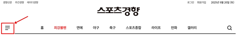 1. 홈페이지 왼쪽 위에 있는 세 줄 모양의 전체 메뉴를 통해 숨겨진 다양한 소식들을 만나러 갈 준비를 할 수 있어요. 이곳에서부터 흥미로운 이야기들을 찾아 떠나볼 수 있습니다.