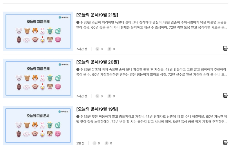 동아일보 오늘의운세 확인방법