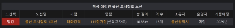4. 가장 먼저 만나게 될 1호선은 태화강역에서 출발하여 신복교차로까지 이어지는 노선입니다. 총 길이는 약 11km에 달하며, 15개의 역이 들어설 계획입니다. 울산의 중심부를 동서로 가로지르는 핵심적인 역할을 맡게 될 것입니다.