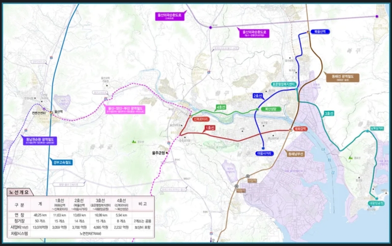 2. 장기적으로 울산 도시철도는 총 4개의 노선으로 계획되어 있습니다. 1호선과 2호선 건설이 우선 추진되며, 이를 통해 태화강역, 공업탑, 울산대학교 등 시내 주요 거점들을 연결하여 시민들의 이동 편의를 높일 것으로 기대됩니다.