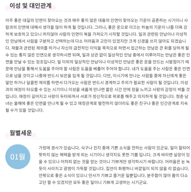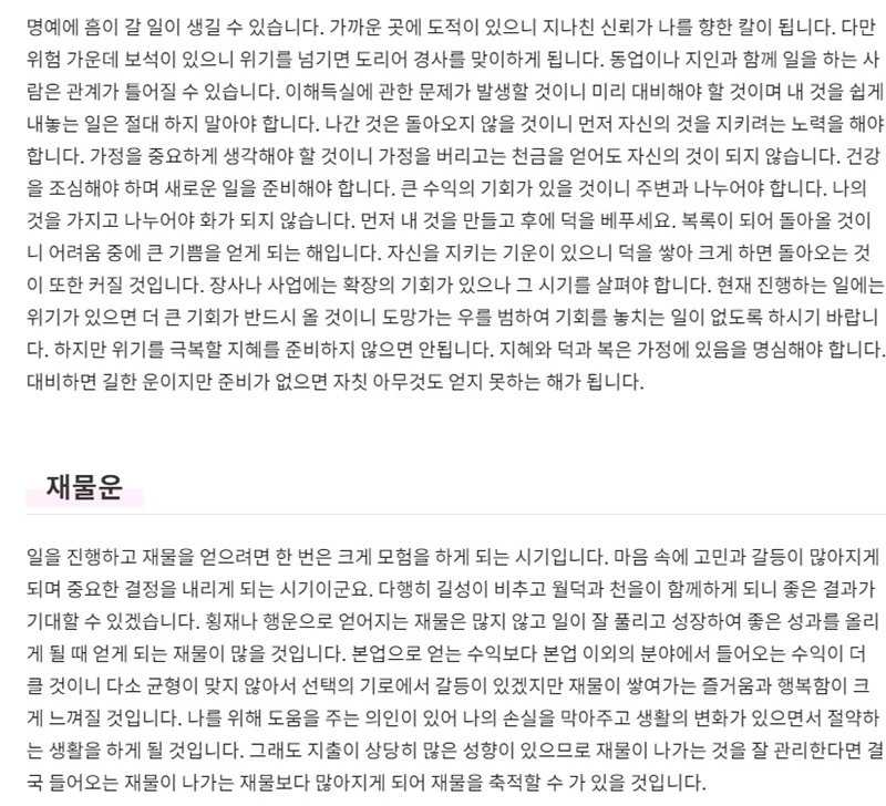 7. 재물과 관련된 운세나 전반적인 삶의 방향에 대한 설명글을 읽어보며 다가올 미래를 차분하게 그려봅니다.