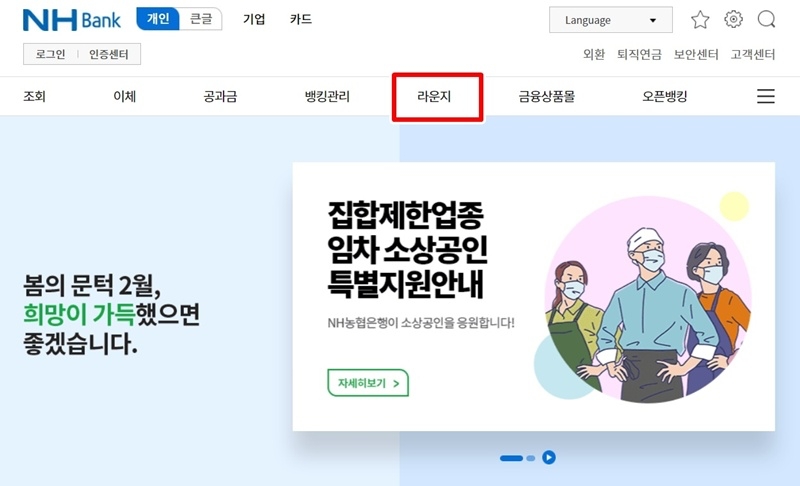 1. 상단에 나열된 여러 메뉴 중에서 라운지라고 쓰여 있는 글자를 찾아 살포시 누르면 새로운 화면이 펼쳐집니다.