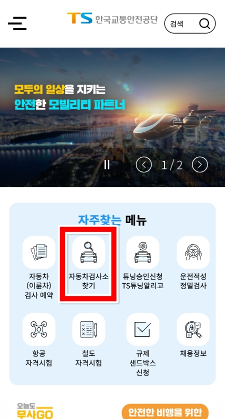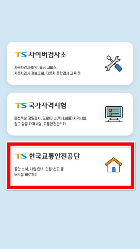 1. 여러 서비스 중에서 'TS 한국교통안전공단'을 선택해서 공식 홈페이지로 들어가 주세요. 자동차와 관련된 다양한 민원을 해결할 수 있는 곳이에요.