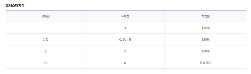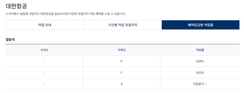 8. 마일리지 적립률은 항공권의 좌석 등급이나 예약 등급에 따라 달라집니다. 일등석이나 프레스티지석은 높은 적립률을 보이며, 일반석도 등급에 따라 100%부터 적립 불가까지 다양합니다.