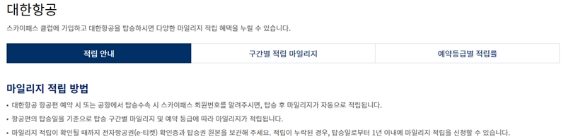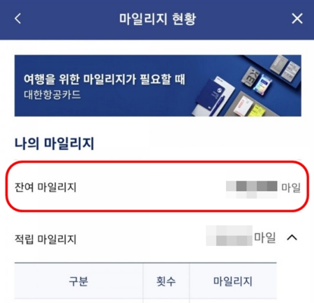 대한항공 마일리지 확인방법