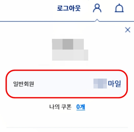 5. PC에서 로그인을 마치면 화면 상단에 본인의 이름과 함께 현재 사용 가능한 마일리지가 바로 표시됩니다. 이를 통해 보유 현황을 한눈에 파악할 수 있습니다.