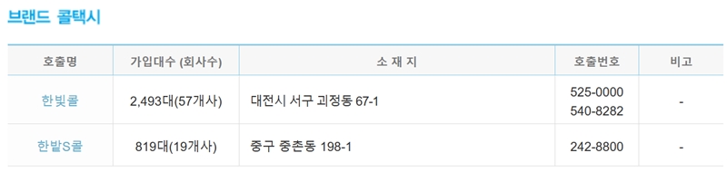 5. 대전에서는 '한빛콜'과 '한밭S콜'이라는 두 개의 브랜드 콜택시가 운영되고 있습니다. 홈페이지에서 각 콜택시의 가입 대수와 연락처를 확인할 수 있어, 필요할 때 편리하게 호출하여 이용할 수 있습니다.