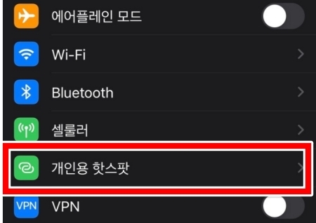 6. 아이폰의 경우에도 설정 방법은 비슷합니다. 바탕화면에서 '설정'으로 들어간 후 목록에서 '개인용 핫스팟'이라는 메뉴를 찾아 선택해 주세요.