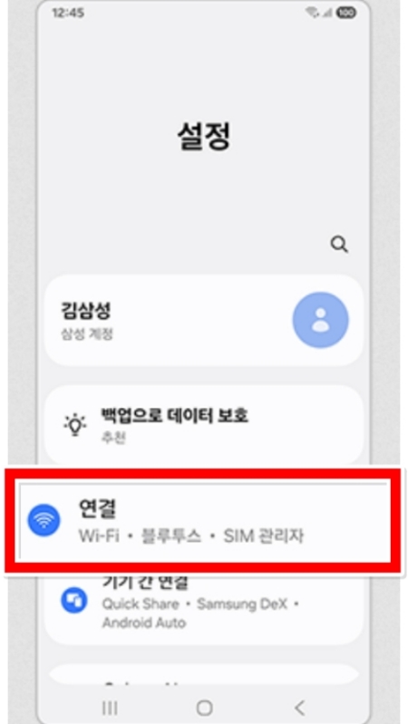 2. 설정 메뉴 안으로 들어왔다면, 와이파이나 블루투스와 같은 통신 관련 항목들이 모여 있는 '연결' 부분을 찾아서 눌러주세요.