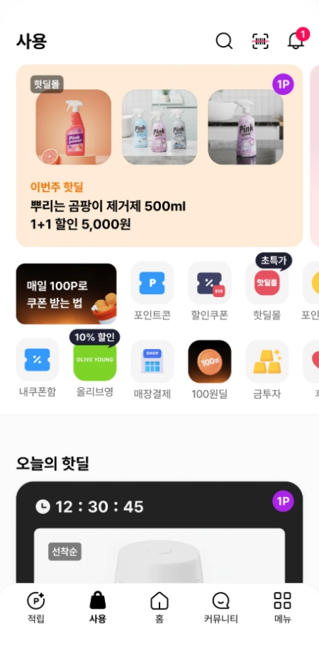4. 쌓은 포인트는 여러 가지 방법으로 사용할 수 있습니다. 매일 새로운 상품이 올라오는 '핫딜' 코너에서는 포인트를 활용해 물건을 저렴하게 구매할 수 있고, 각종 할인 쿠폰을 구매하는 데에도 사용할 수 있습니다.