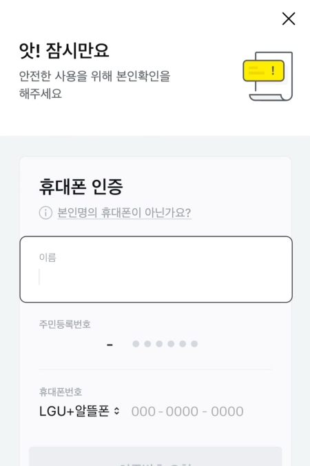 6. 안전한 이용을 위해 본인 확인 절차가 필요합니다. 화면에 나타나는 안내에 따라 정확하게 입력해 주세요.