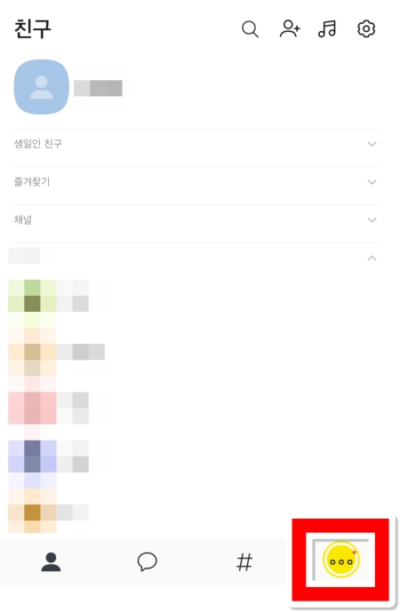 1. 우선 스마트폰에서 카카오톡을 실행한 후, 화면 오른쪽 아래에 있는 점 세 개 모양의 '더보기' 메뉴로 들어가 주세요. 이곳에서 카카오톡의 다양한 부가 기능들을 만나볼 수 있습니다.