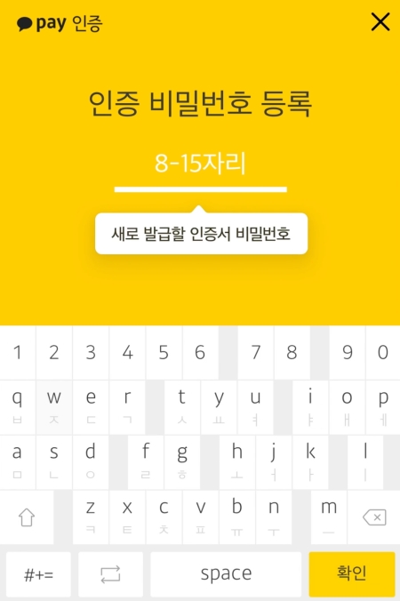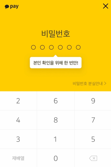 10. 다음으로, 본인 확인을 위해 기존에 설정해 둔 카카오페이 비밀번호 6자리를 입력해 주세요. 이 과정을 통해 다른 사람이 내 인증서를 함부로 발급받는 것을 방지할 수 있습니다.