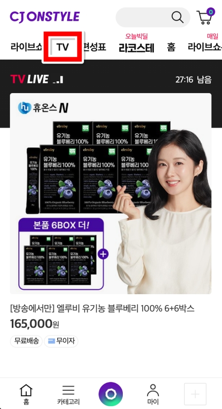 2. 상단 메뉴 중 'TV'를 선택하면, 현재 실시간으로 방송되고 있는 상품을 바로 만날 수 있습니다. 방송을 보면서 제품에 대한 생생한 정보를 얻고, 특별한 방송 혜택과 함께 쇼핑을 즐길 수 있습니다.