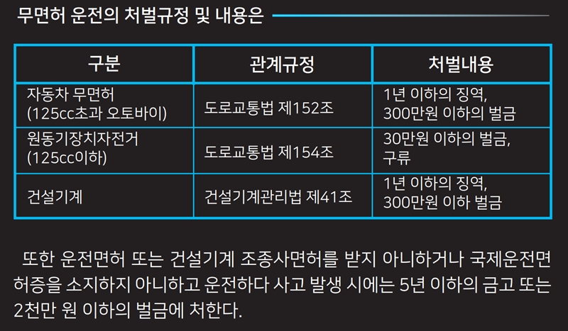 무면허 운전 적발시 벌금 결격기간