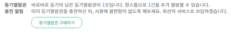 8. 회원가입을 마치면 신규 회원 혜택으로 등기 열람권 1장이 지급된 것을 확인할 수 있습니다. 이 열람권으로 등기부등본 1건을 무료로 열람할 수 있습니다.