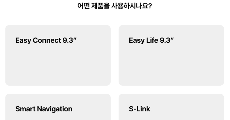 4. 자동차 브랜드를 선택하고 나면, 차량에 설치된 내비게이션 제품 모델을 고르는 화면이 나옵니다. 사용 중인 제품명을 정확히 확인하고 선택합니다.