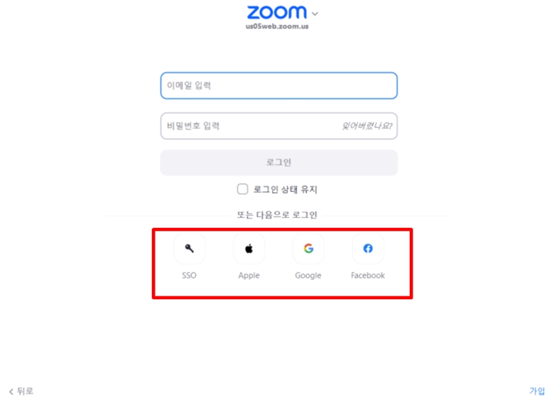 4. 로그인 화면에서는 이메일과 비밀번호를 직접 입력하거나, SSO, Apple, Google, Facebook 등 기존에 사용하던 다른 계정을 연동하여 더 간편하게 접속할 수도 있습니다.