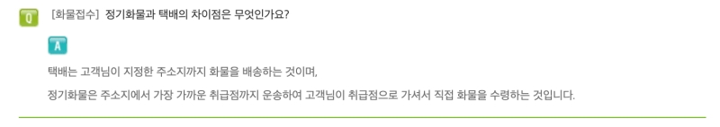 여기서 한 가지 알아두면 좋은 점이 있어요. '대신정기화물'은 우리가 흔히 아는 집 앞까지 배송해주는 '택배'와는 조금 다른 개념이거든요. 택배는 고객이 지정한 주소지까지 물건을 배송해주는 것이고, 정기화물은 주소지에서 가장 가까운 취급점(영업소)까지만 운송해주는 방식이에요. 그래서 물건을 찾기 위해서는 내가 직접 취급점으로 가야 한답니다.