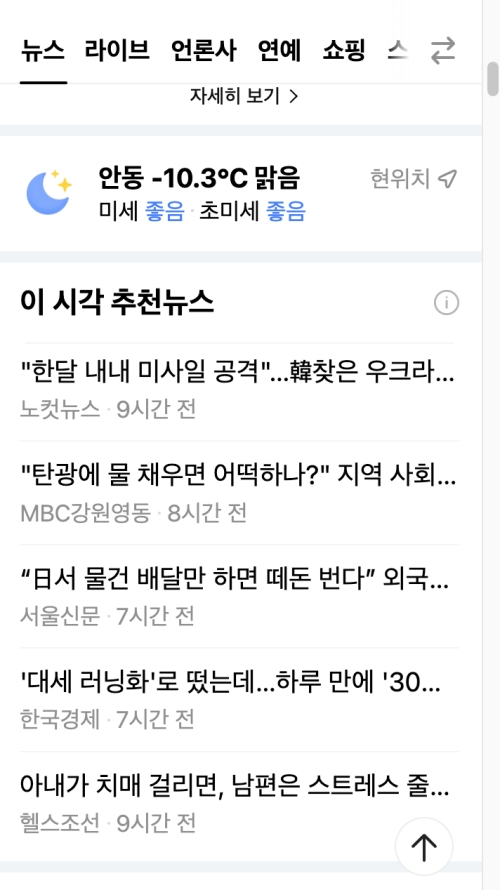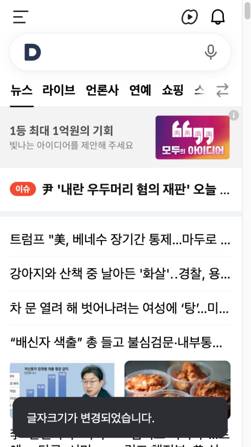 이제 다시 뉴스 홈 화면으로 돌아와 보면, 이전과는 확연히 달라진 것을 느낄 수 있을 거예요. 기사 제목들이 한눈에 쏙 들어올 만큼 큼직하고 시원하게 바뀌어 있죠? 이렇게 간단한 설정 하나만으로도 훨씬 편안하게 뉴스를 읽고 정보를 얻을 수 있답니다.