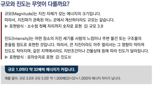 많은 분이 가장 헷갈려 하는 '규모'와 '진도'의 차이를 명확히 알아볼게요. '규모'는 지진 자체가 가진 에너지의 크기를 나타내는 절대적인 값이에요. 그래서 어디서 측정하든 같은 값을 가지며, 보통 소수점 첫째 자리까지 숫자로 표현해요. 반면 '진도'는 특정 장소에서 사람이 느끼는 흔들림의 정도나 물체의 피해 정도를 나타내는 상대적인 값이라서, 진앙지에서 멀어질수록 작아지고 로마 숫자로 표기된답니다.